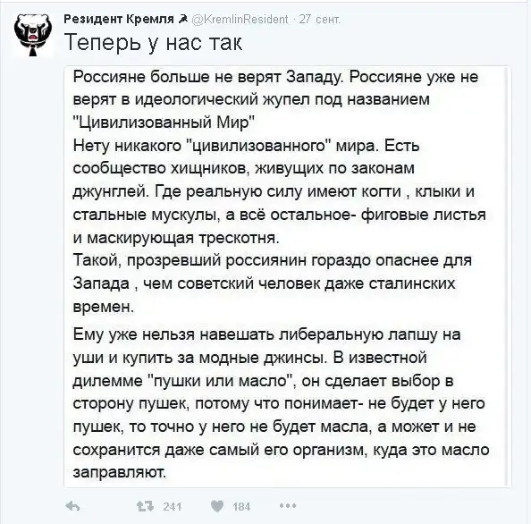 P.S. Сам есет - интересный персонаж. Судя по подписи - живёт в Томске, почти все комментарии - явно антироссийские, не против Путина, правительства, сложившегося строя, а именно против России, в некоторых комментариях себя с Россией не отождествляет.