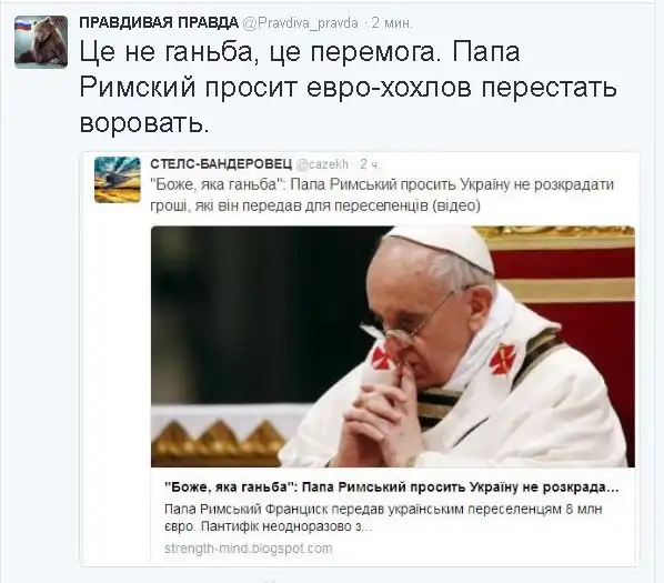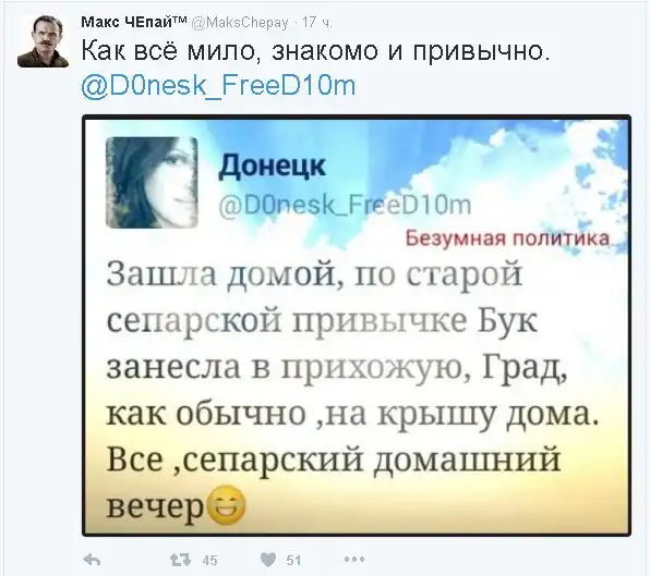 Вчерашнее очень позабавило ,думал что такими вбросами только кастрюлеголовые свидомиты занимаются, а нет нашлась и у нас гнилая интеллигенция .