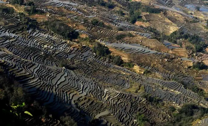 Террасы в Китае. Они очень старые — их сделал пару тысяч лет назад местный народ хани, а недавно их внесли в список всемирного наследия ЮНЕСКО.
