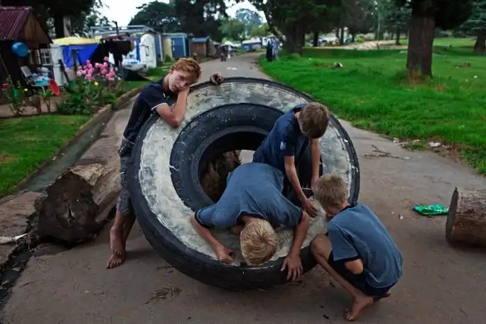Наподобие черных гетто в США в ЮАР существуют белые гетто, в которых проживают около 42 000 бедных белых граждан страны. После падения системы апартеида, положение многих белых ухудшилось, одни стали уезжать из страны, другие пытались свести концы с концами на родине. Далее предлагаем взглянуть на одно из типичных белых гетто, перед вами палаточный городок Munsieville, расположенный к западу от Йоханнесбурга, где проживают около 300 человек.