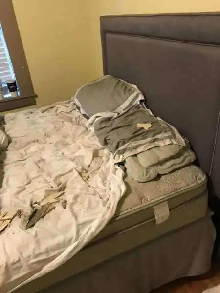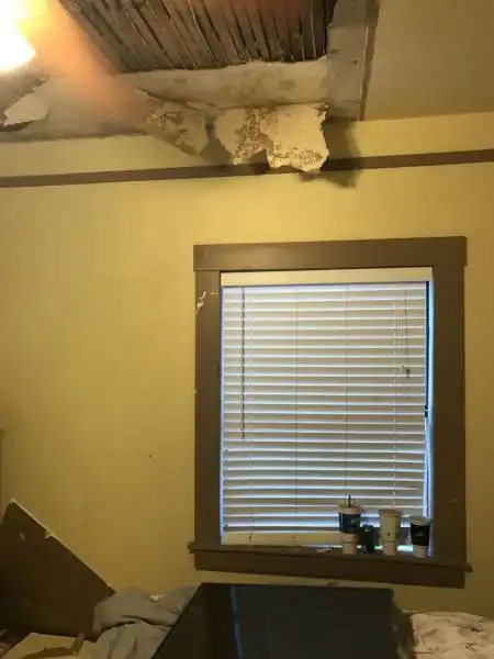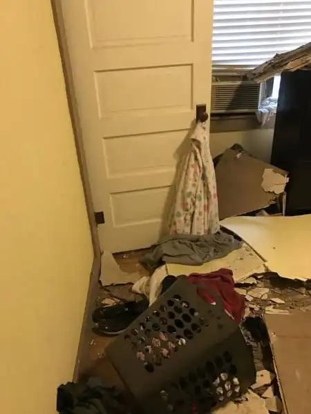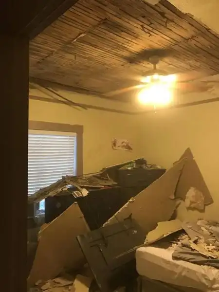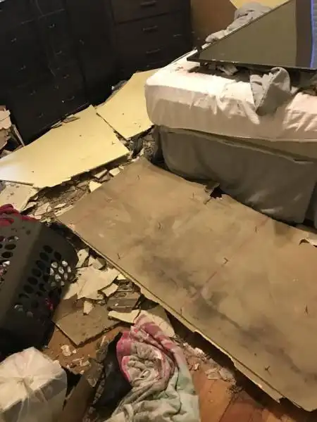 Ветхое жилье может преподнести неприятный сюрприз в самый неподходящий момент. Именно так и произошло с парой, живущей в этом 102-летнем доме. Во время сна потолок вместе с телевизором упал прямо на спящих хозяев. Сами они не пострадали не сильно, кроме того падение перенес и их телевизор, однако на ремонт в спальне теперь придется потратиться.