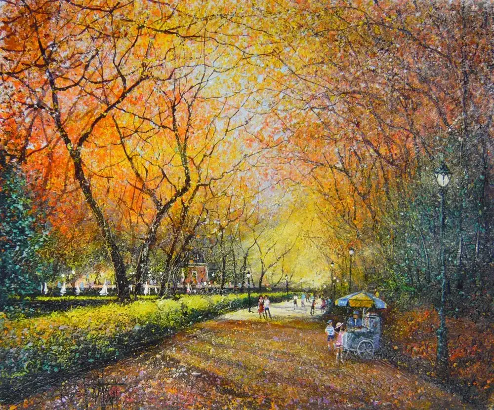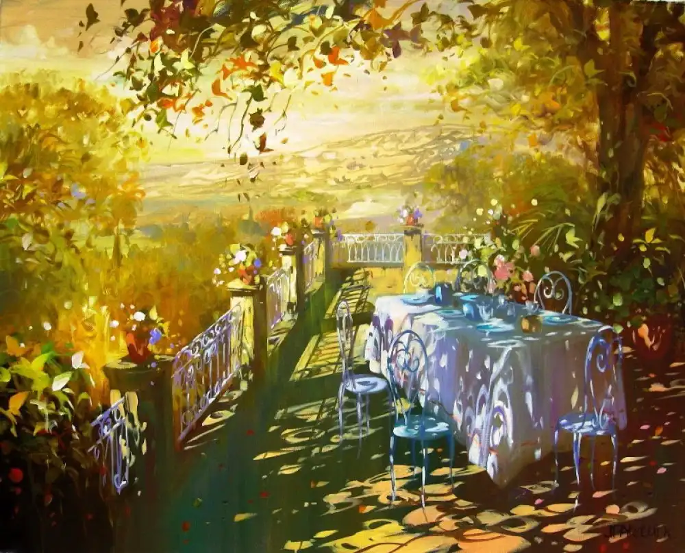 Если у вас вызывает грусть пасмурная погода, тогда вам придутся по душе солнечные картины истинного француза Лорана Парселье. На картинах позитивного художника-импрессиониста даже осенью — только прекрасная погода. А его «фирменные» солнечные зайчики сразу поднимают настроение.