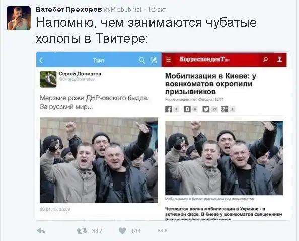 Ещё раз повторю для непонятливых: молоть языком и на деле дать пи...дюлей две огромные разницы. Просто пропиарился на этой ситуации.