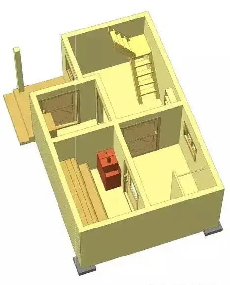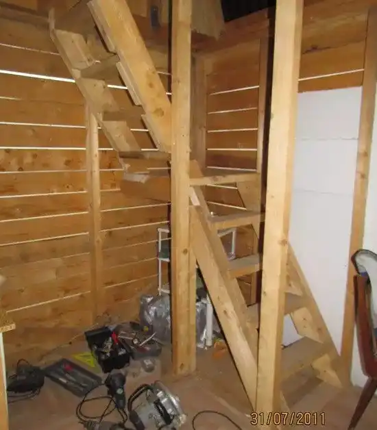 Внутри конечно писец как всё убого. Лестница на 2й этаж. Сначала сделал прямую, но из за неудобства распилил и переделал на с поворотом