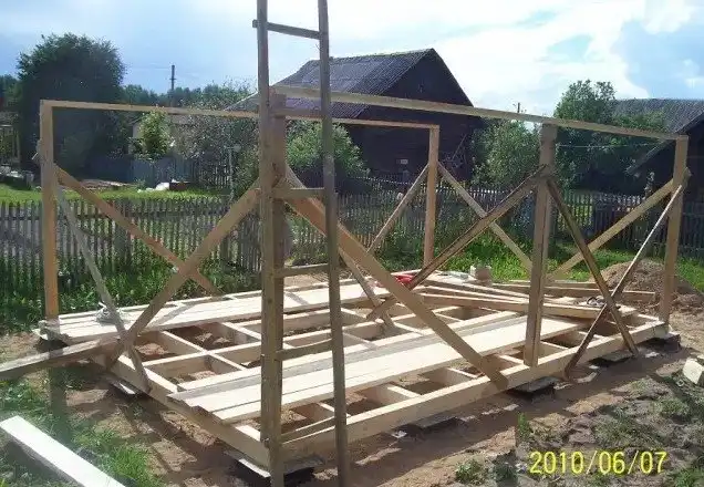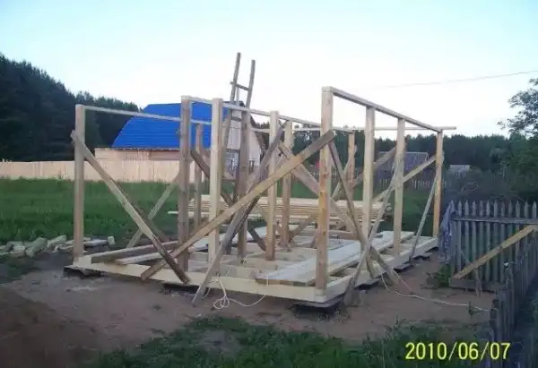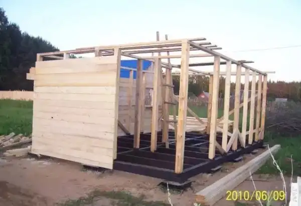 Ляпаем нижнюю обвязку каркаса, выровняв блоки, гидроизолируя и.тд.
