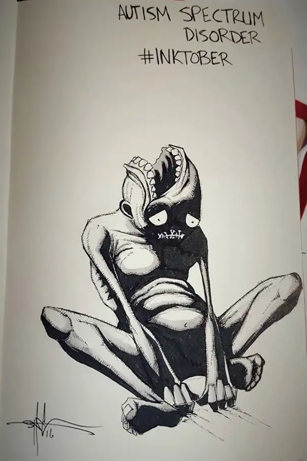 Тысячи художников выкладывают в сеть свои еждневниые рисунки, это стало популярным. Темы для таких серий, конечно же, выбираются разные. Иллюстратор Шон Косс выбрал довольно необычную тему, я бы даже сказал, шокирующую, но подсказкой ему послужил «статус» октября, он, как известно, объявлен месяцем психического здоровья.