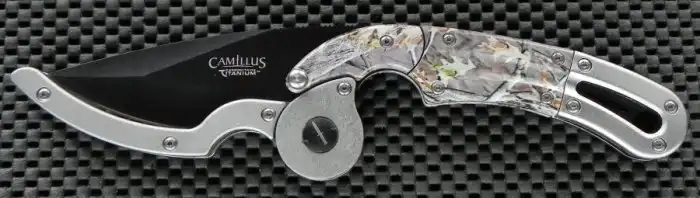 Напоследок хотелось бы представить такой любопытный инструмент, как Camillus Dominator. Особенность ножа заключается в том, что фрагмент его ручки работает ножнами. В сложенном варианте, половина рукоятки отогнута так, что полностью закрывает собой лезвие.