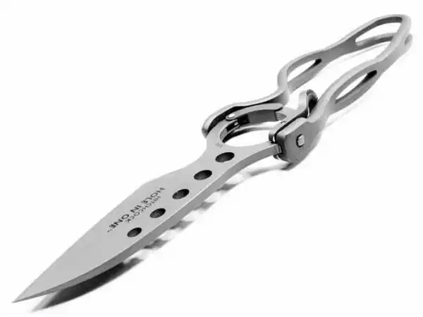 Нож выбрасывающий лезвие по вертикальной дуге. Имеет невероятно минималистический дизайн. Важным достоинством CRKT Hole in One является то, что лезвие по-настоящему выбрасывается после нажатия кнопки.