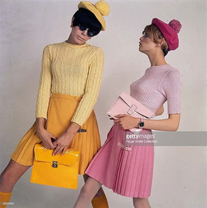 Яркие цвета и плиссированные юбки, Твигги справа: