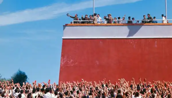 Председатель Мао и его соратники взирают на массы с трибуны на площади Тяньаньмэнь, фотограф Weng Naiqiang, 1966: