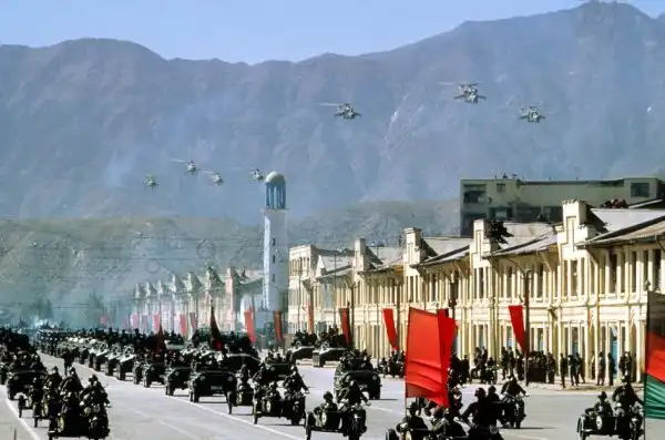 Товарищ Наджибулла принимает парад советских войск в Кабуле 17 октября 1986 года перед возвращением соответствующих частей в СССР: