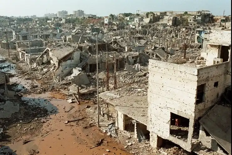 Бейрут 96-го после 10 лет гражданской войны был чем-то вроде нынешнего Алеппо — разделённый на сектора враждующими этно-конфесиональными группировками, с бесконечными обстрелами, терактами и резнёй мирных жителей.