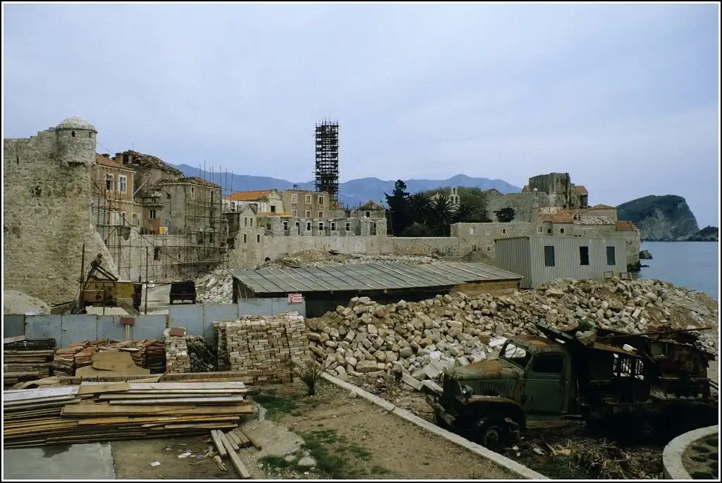 Реконструкция в старого города Будвы в Югославии после разрушительного землетрясения 1979 года, 1986 год: