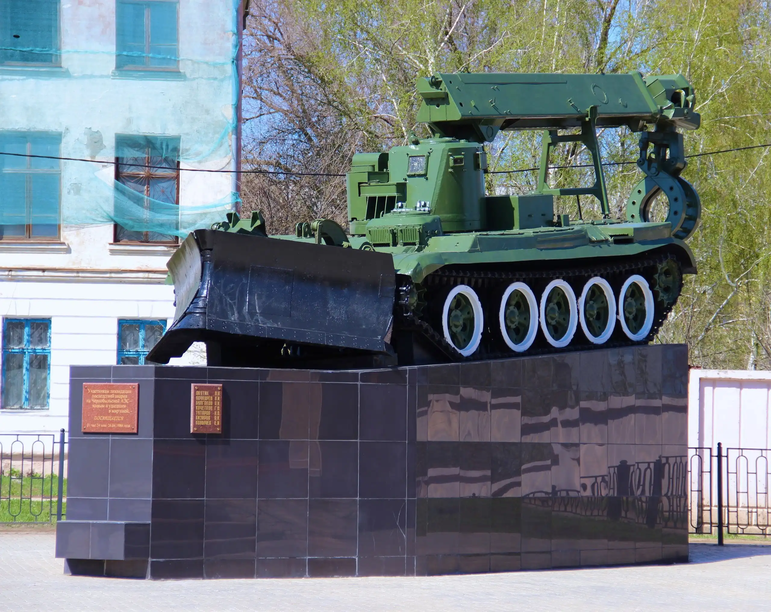 Монумент установлен как дань памяти ликвидаторам аварии на Чернобыльской АЭС. А ИМР-2 — инженерная машина разграждения, именно такие и принимали участие в ликвидации аварии. Памятник установлен на центральной площади рядом с местным домом культуры.