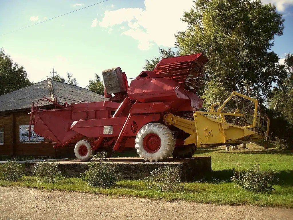 Информации о том, когда был поставлен этот монумент нет, но памятная табличка на нём гласит: «На этом комбайне в жатву 1972 г. механизатор совхоза «Путиловский» выпускник Ключевского СПТУ-20 1953 г. герой социалистического труда Максименко Илья Александрович намолотил 25346 ц. зерна комбайн поставлен на пьедестал славы как символ трудового подвига».