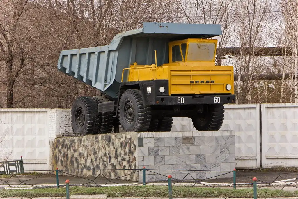 Во времена Советского Союза именно на таких БелАЗах вывозили породу с Сибайского карьера, самого крупного в мире. А позже один из трудяг был установлен на постамент в честь трудовых достижений автомобилистов БМСК и в ознаменование 100-летнего юбилея дня международной солидарности трудящихся.