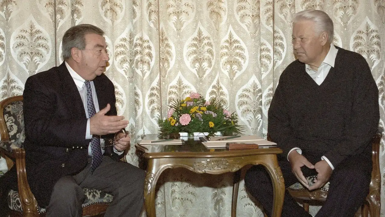 Президент РФ Борис Ельцин беседует с министром иностранных дел РФ Евгением Примаковым, Борис Приходько, РИА Новости, 1996: