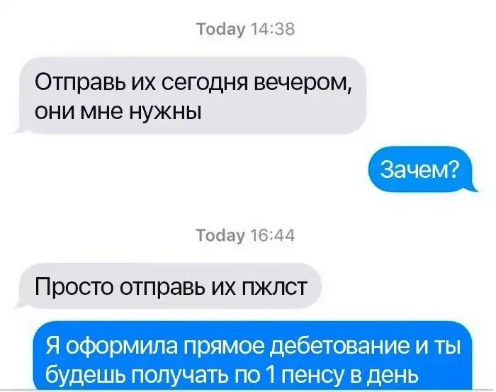 Он оформила на его имя прямое дебетование, и теперь он будет получать по 1 пенсу в день. В пересчёте на время, на то, чтобы полностью получить обратно свои деньги у бывшего Харриет уйдёт около 17 лет.