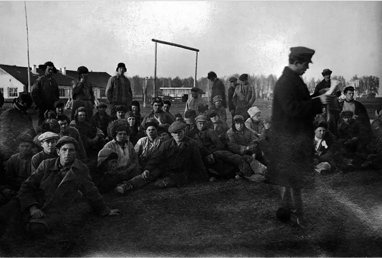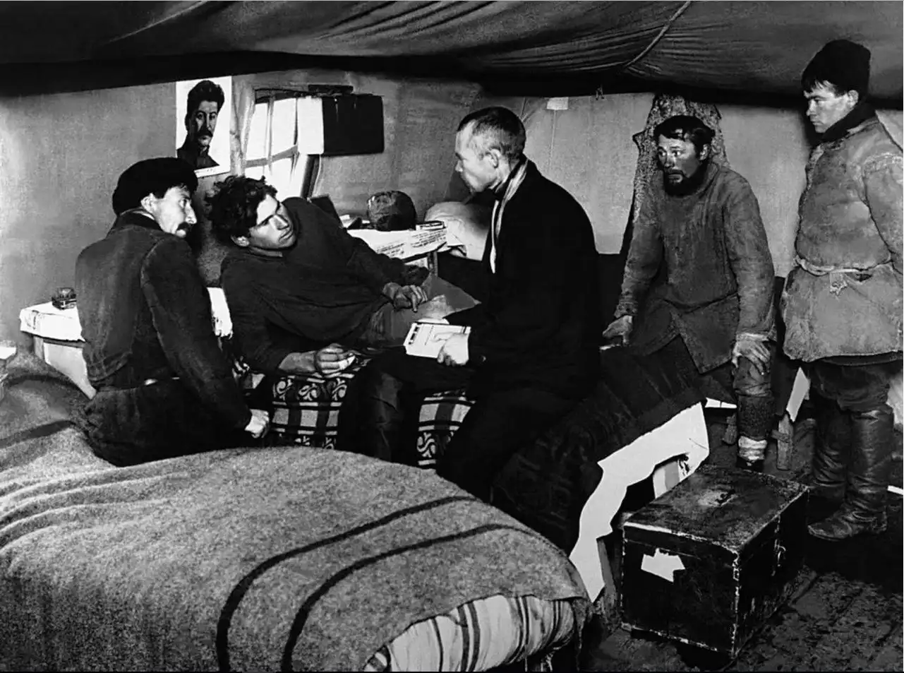 Палатка первостроителей Магнитогорска. Первая политинформация. 1930-е.