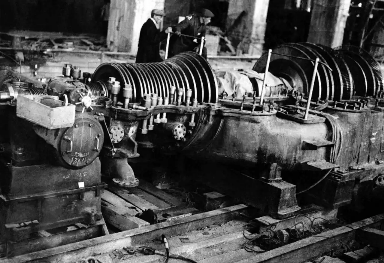 Магнитогорск. Монтаж первой турбины Центральной электростанции. 1931