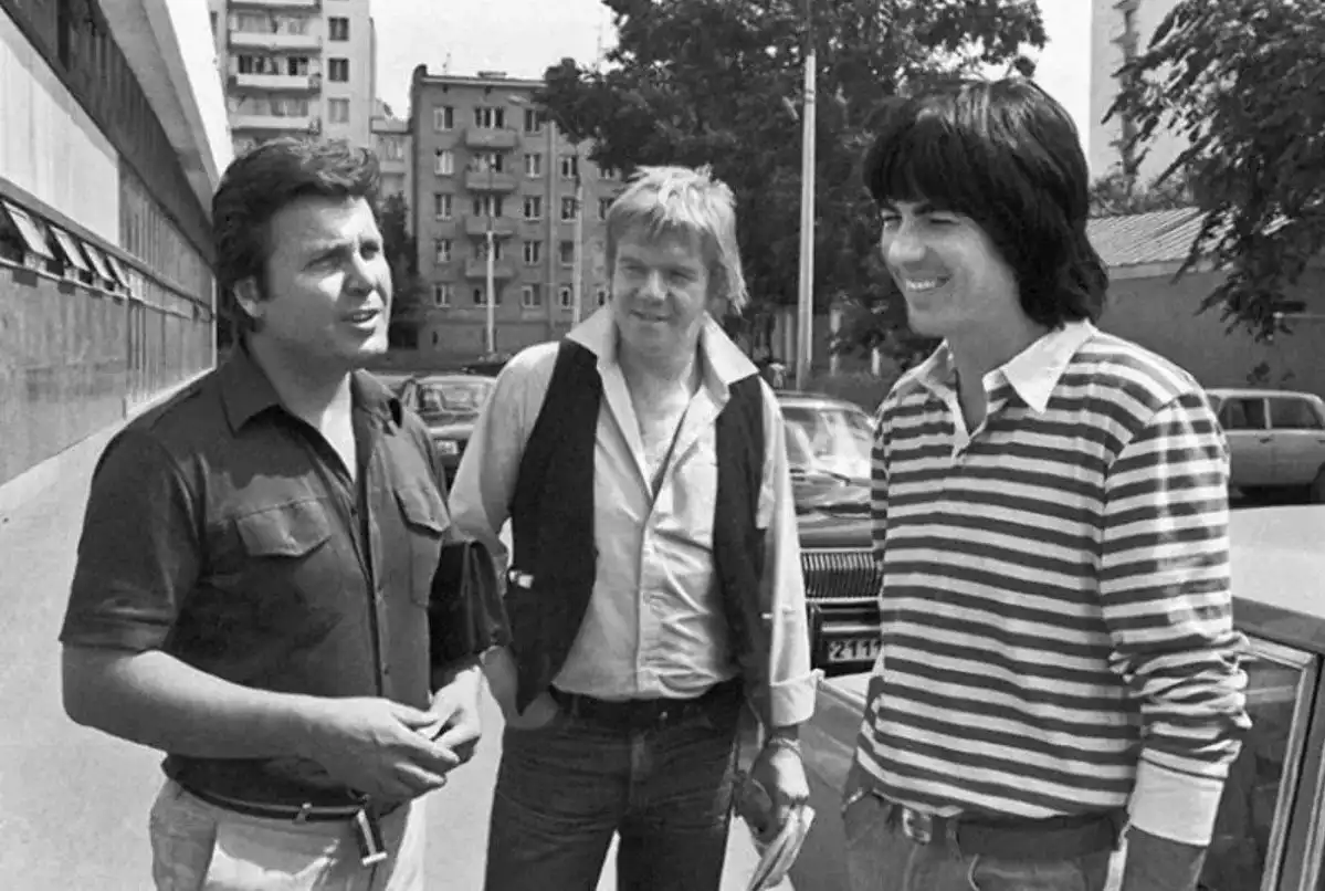 Лев Лещенко беседует с французскими музыкантами группы «Space» Яном Лозетом и Дидье Маруани
