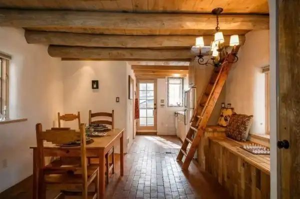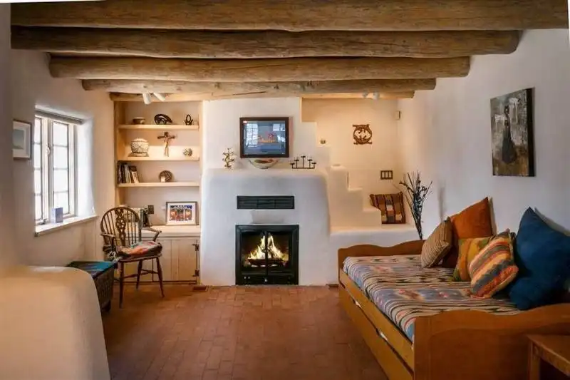 Однако если жилые дома пуэбло обычно были большими многоквартирными жилищами, в этом маленьком доме площадью 47,4 кв. метра поместилась только одна спальня.