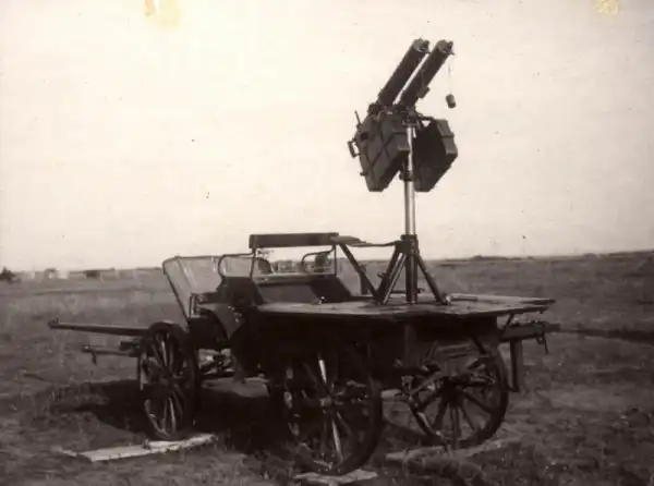 Любопытный раздвижной телескопический станок под пулемет Гочкисс модели 1914 года.