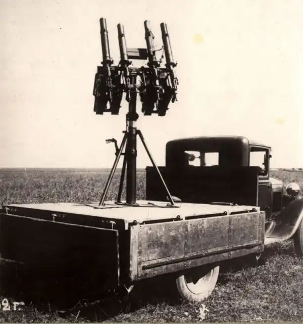 Любопытный девайс в кузове отечественной полуторки редчайшие, и по сути, полуэкспериментальные станковые пулеметы Дегтярева ДС-32 с кожухами по типу Льюиса