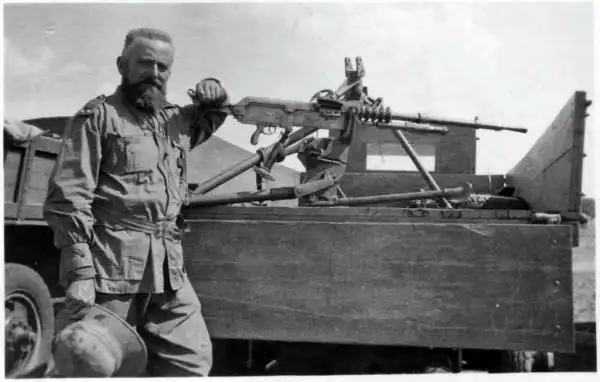 Итальянский лейтенант-капеллан возле установленного в кузове грузовика трофейного пулемета Гочкисс мод.1914.