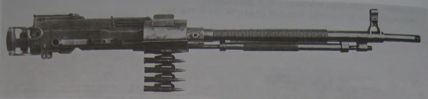 Однако военных эта конструкция не удовлетворила, и в 1930 году конструктор Дегтярёв предоставил вариант пулемёта под патрон 12,7×108 мм, получивший обозначение ДК (Дегтярев Крупнокалиберный). В целом он повторял конструкцию ДП, отличаясь, помимо размеров, органами управления огнём и типом магазина (сам тип питания остался без изменений).