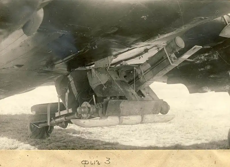 Транспортировка 76-мм полковой пушки образца 1943 г. ОБ-25 на внешней подвеске под бомбардировщиком Ил-4