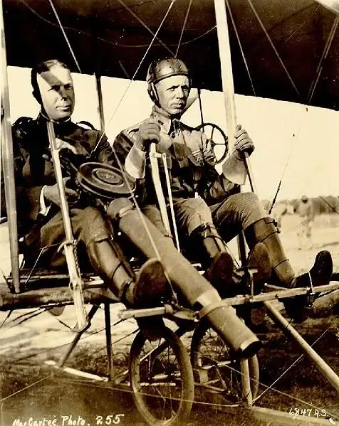 Британские авиаторы,вооруженные пулеметом Льюиса, в самолете "WRIGHT MODEL B".1912 год.