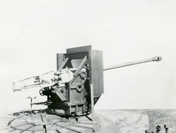 Немецкое танковое орудие "7,5 см Kw.K. 42" установленное на поворотный лафет на стационарной позиции.