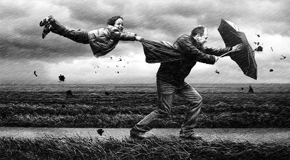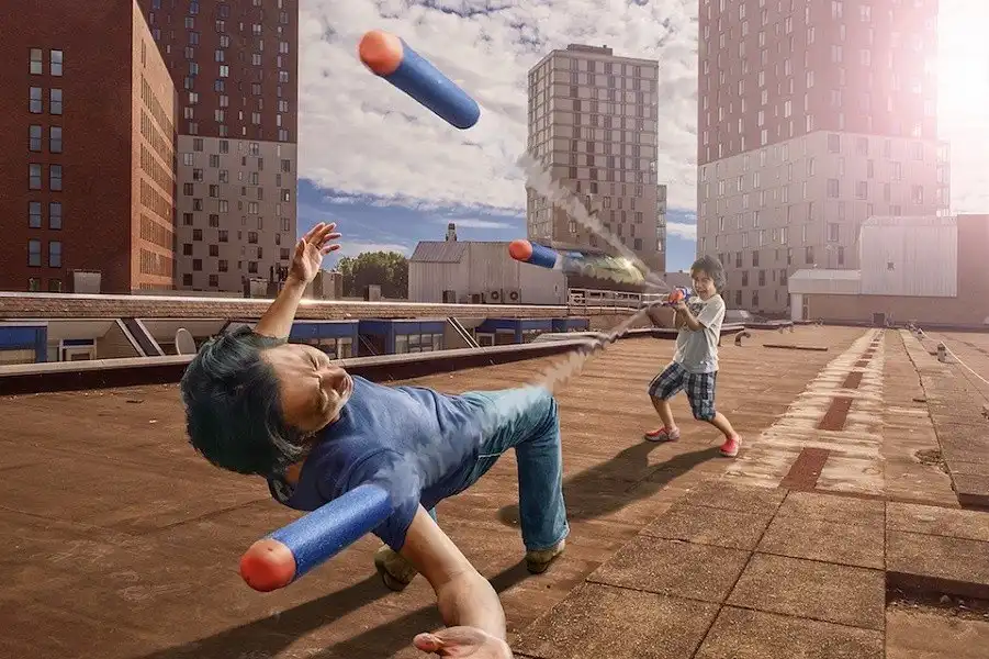 Адриан Соммелинг талантливый 49-летний фотограф, цифровой художник, графический дизайнер и веб-разработчик, живет в Гааге, Нидерланды. Адриан работает в Photoshopе и создает сюрреалистические ситуации, а его сын часто является главным героем сцен.