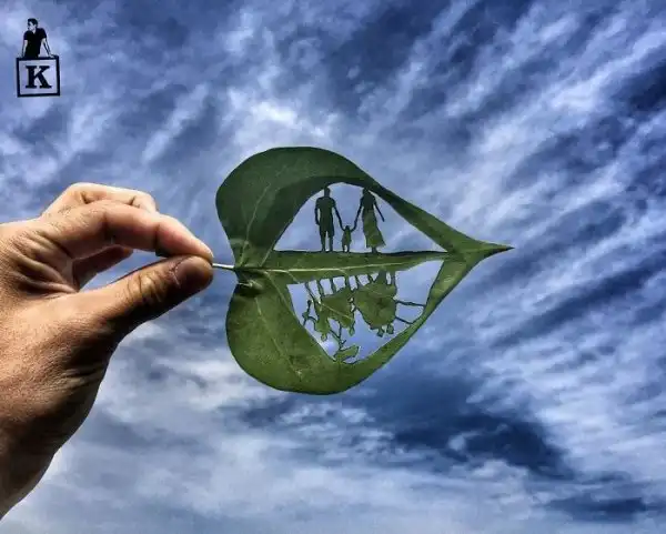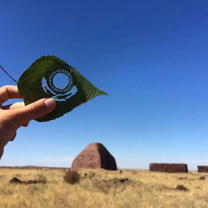 Художник-самоучка Канат Нуртазин из Астаны творит из всего, что попадется под руку. Один из любимых его материалов - обыкновенные листья. С помощью лезвия он вырезает из древесного листа необыкновенно тонкие и точные миниатюры, каждая из которых, если посмотреть на нее на нужном фоне и под правильным углом, превращается в целую волшебную историю.