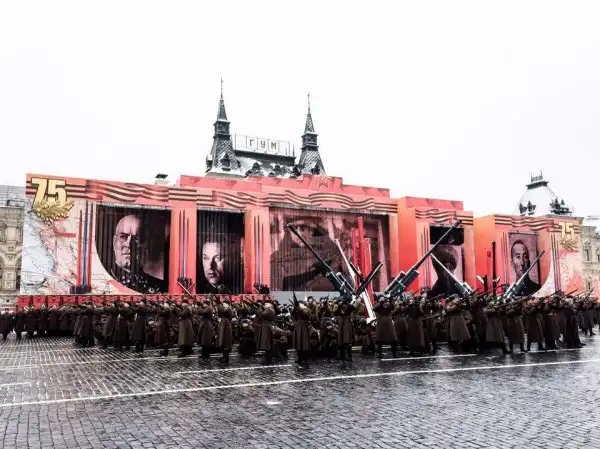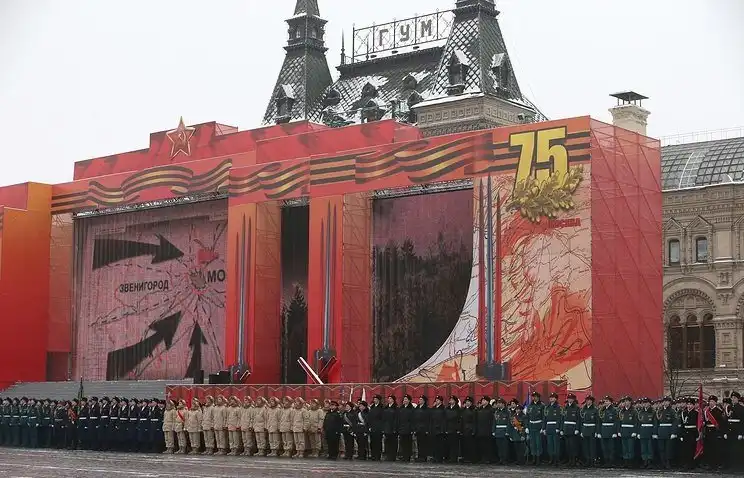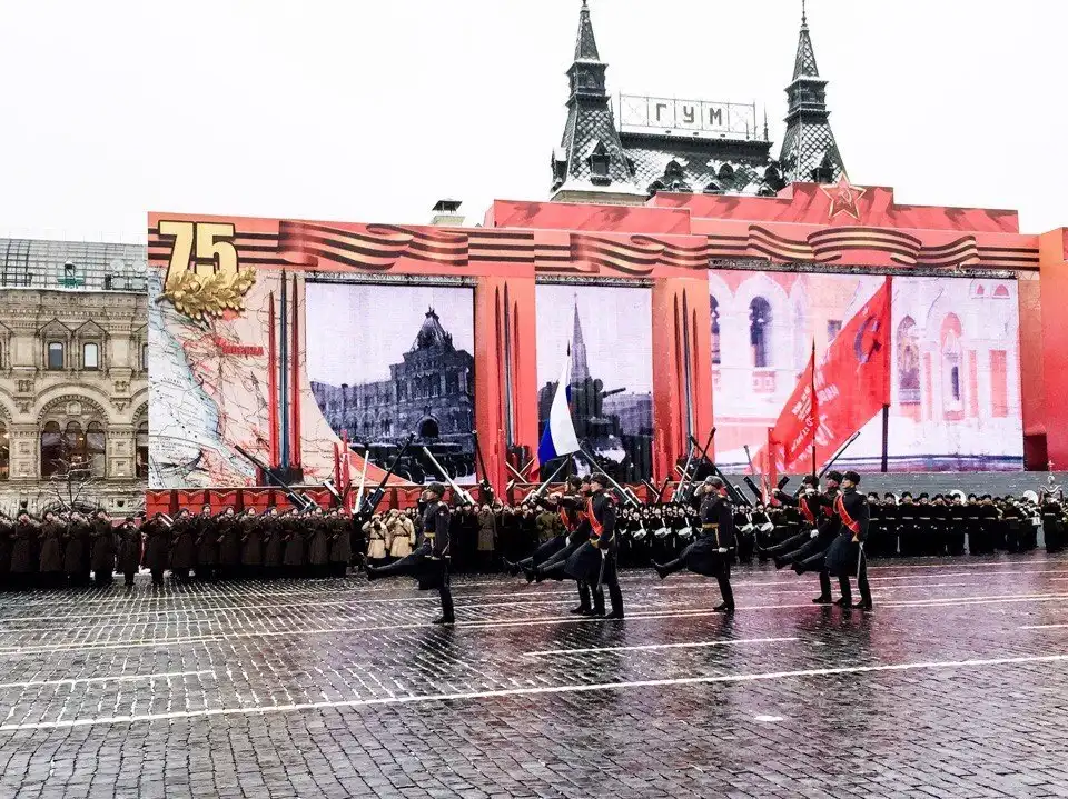 Погода в Москве сегодня стоит такая же как и 75 лет назад, что позволяет совершить почти стопроцентное погружение в этот важный для страны исторический день.