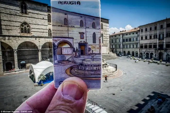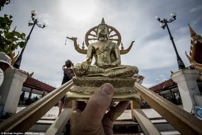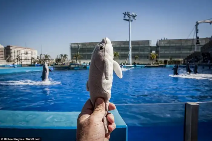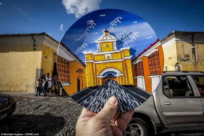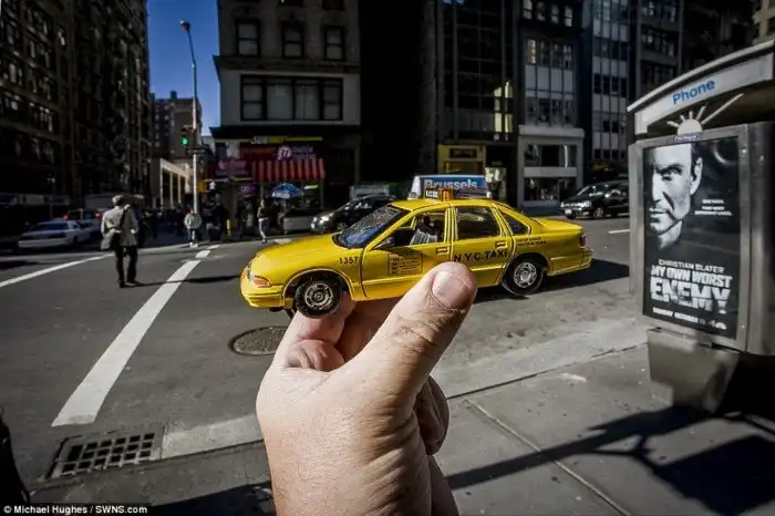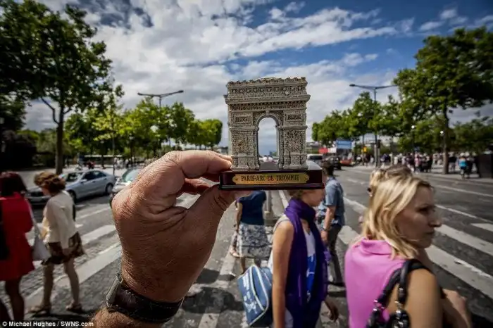 Перед вами серия снимков, которую фотограф Майкл Хьюз (Michael Hughes) собирает с 1999 года. Куда бы фотограф ни приехал, он тут же приступает к поиску подходящих дешевых сувениров, чтобы сфотографировать их на фоне местных туристических достопримечательностей для своей коллекции.