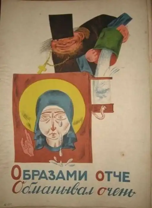 В Советском Союзе активно боролись с религией и с малых лет воспитывали из детей атеистов. Большую роль в этом сыграла специальная литература, и одной из таких книг была антирелигиозная азбука. Вот пример такой азбуки образца 1933 года.