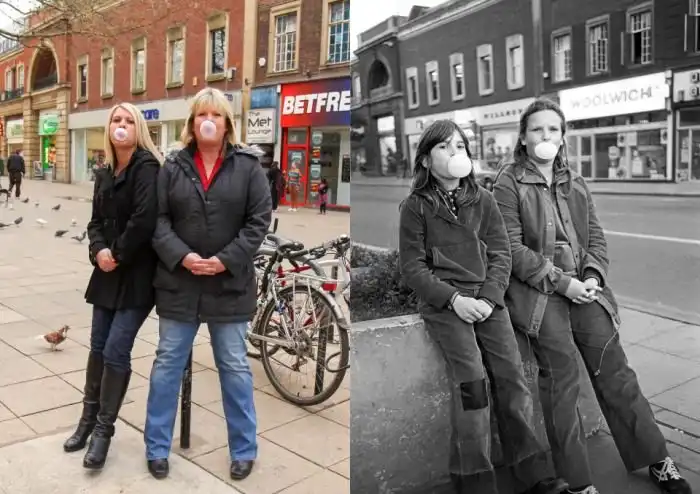 В 70-е - 80-е годы фотограф Крис Порз (Chris Porsz) фотографировал молодежь британского города Питерборо и решил по возможности воспроизвести эти снимки спустя десятилетия. Крис отыскал давно повзрослевших людей со своих снимков и попробовал в деталях повторить старые фотографии. Что из этого получилось, смотрим далее.