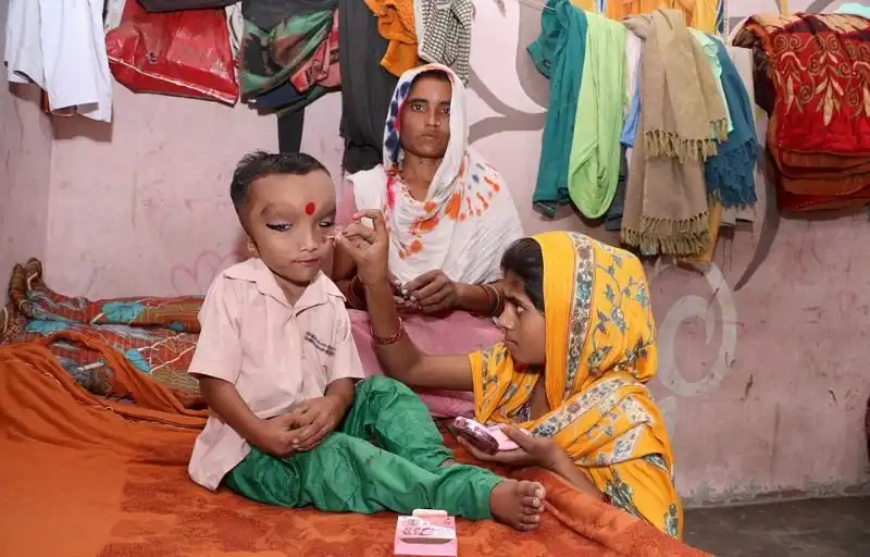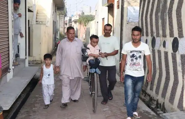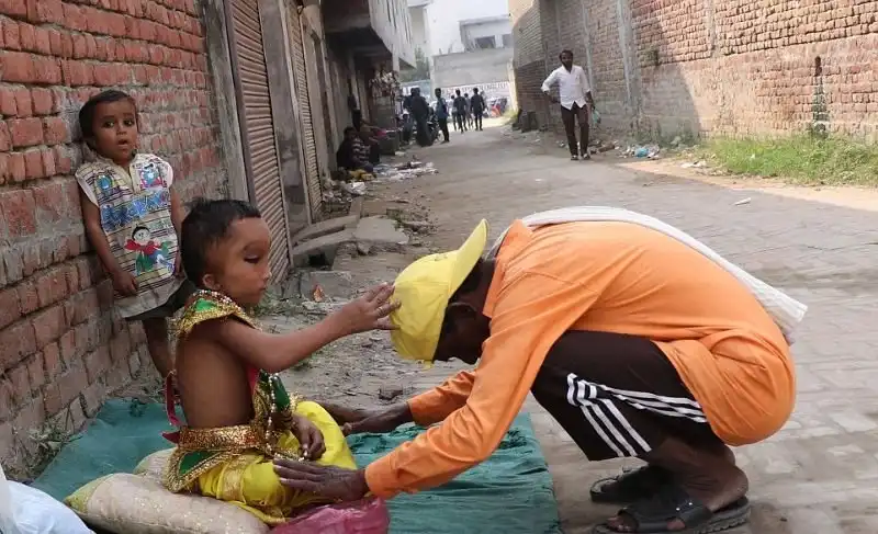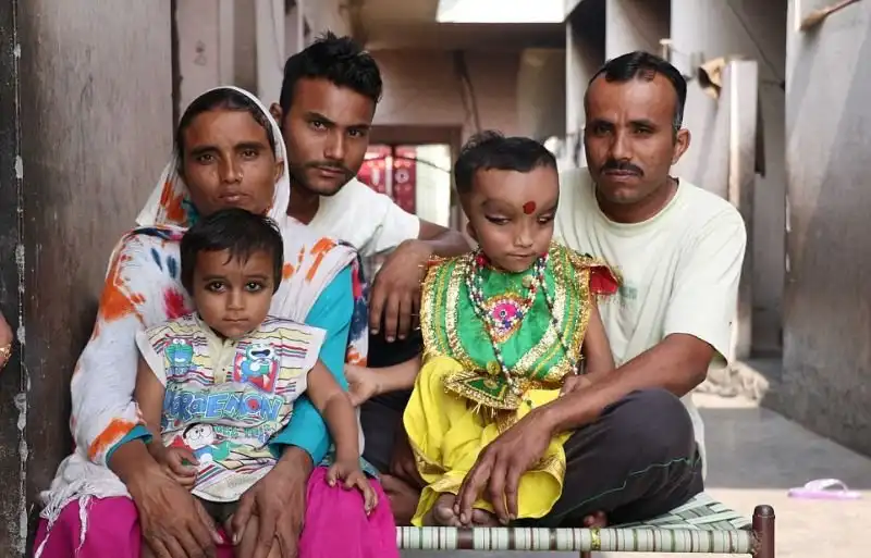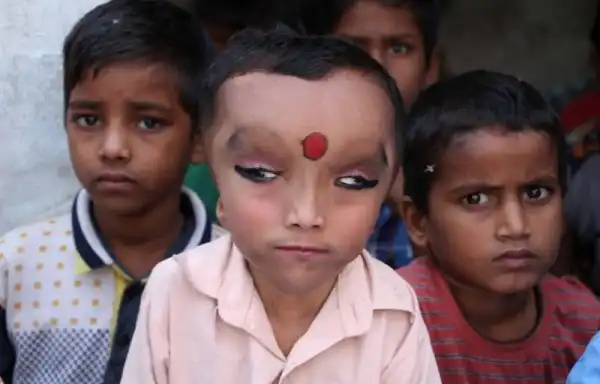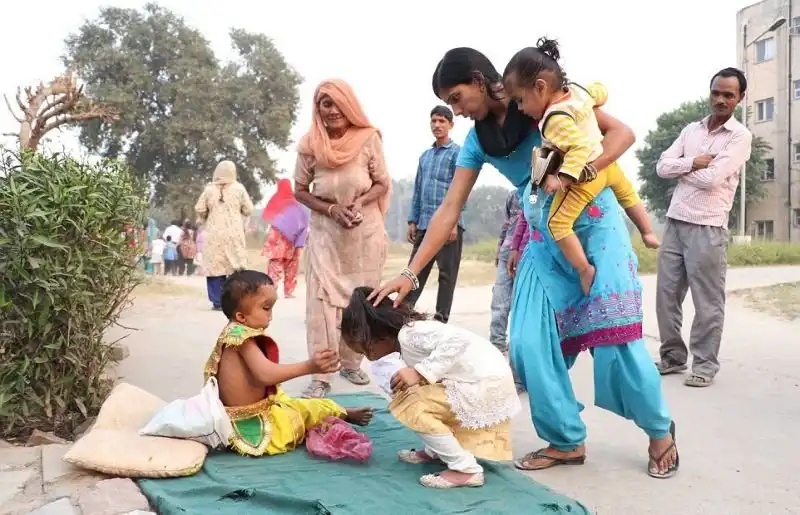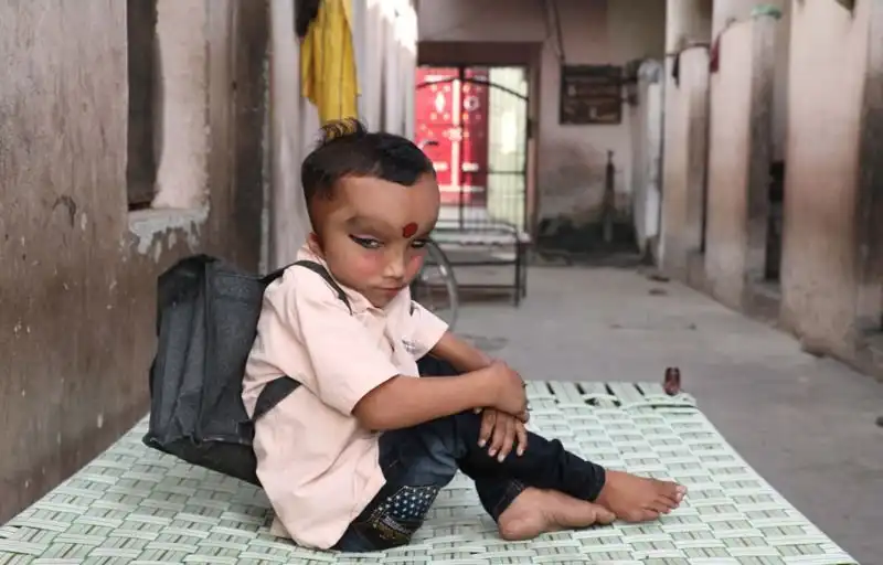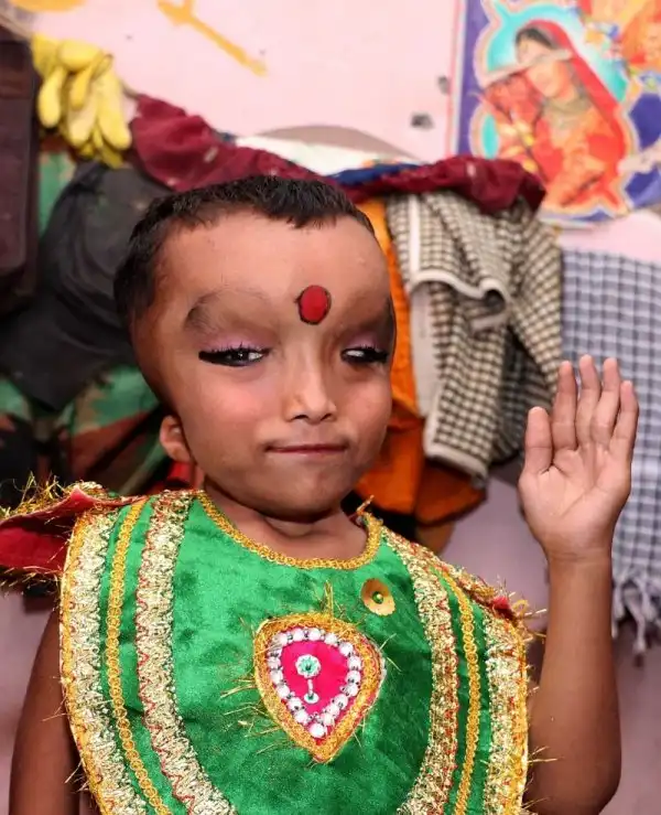 Шестилетний Праншу из индийского города Джаландхар, штат Пенджаб, родился с генетическим дефектом, в результате чего размеры его головы превышают нормальные, а сам мальчик не может ходить. Местных же его внешность не пугает, а наоборот - вдохновляет. Они считают его реинкарнацией Ганеши и поклоняются ему.