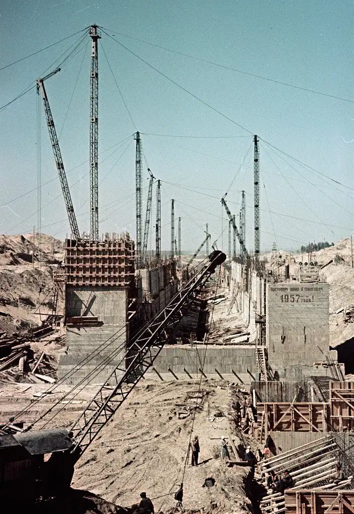 Строительство Новосибирской ГЭС на снимке С. Фридлянда, 1956: