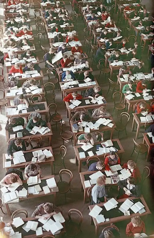 Студенты в библиотеке Томского ун-та, фото С. Фридлянда, 1956: