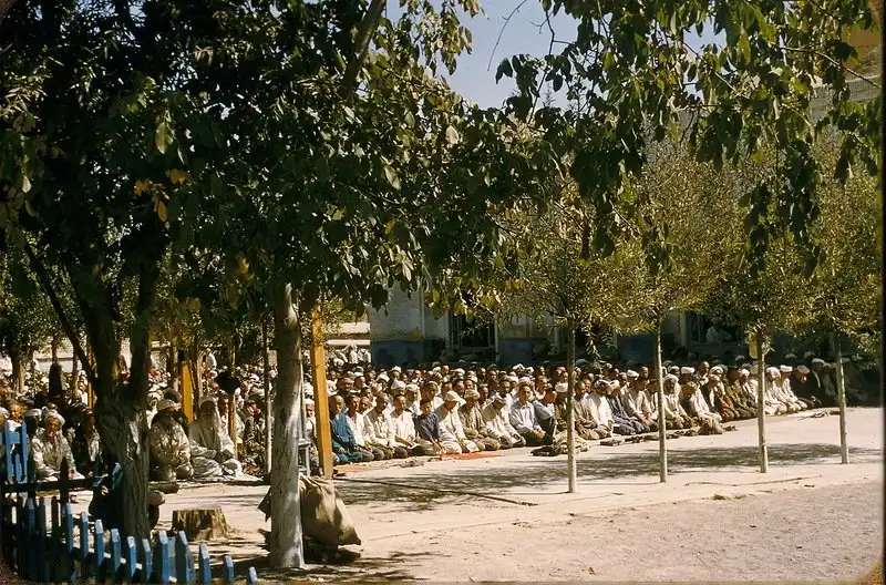 Молящиеся мусульмане в центре Ташента на снимке Ж. Дюпакье, 1956: