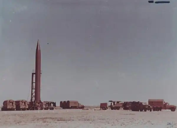 Установка баллистической ракеты Р-5М на стартовую площадку. фото из архива Министерства обороны, 1956: