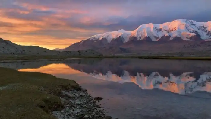 Вид, открывающийся с Каракорумского шоссе, самой высокогорной международной трассы в мире, пролегающей через Хунджерабский перевал на высоте 4693 метров. Дорога соединяет Китай и Пакистан и является одной из самых опасных в мире.