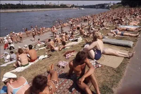 Ганс Рудольф Утхофф. Мы уже показывали вам его фотосессию из Ленинграда 1965 года и рассказывали об этом известном фотографе. В 1975 году он снова побывал в СССР, на это раз в Москве, и, разумеется, с камерой. На приведенных снимках: отдых населения на Ленинских горах и Красная площадь. А год 1975-й - хороший был год, сытый даже в провинции.
