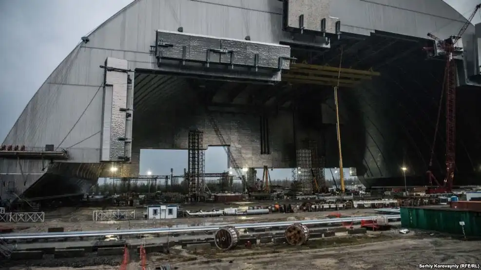 Новый безопасный конфайнмент В середине ноября конструкцию надвинут на старый бетонный саркофаг. Стены с двух сторон конструкции будут построены в 2017 году. Распространение радиации будет остановлено, как предполагают, на сто лет