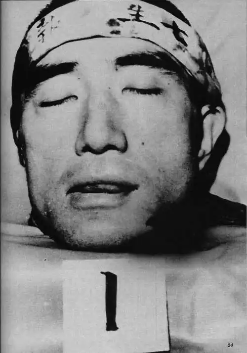 1970. Голова Юкио Мисимы, совершившего харакири после неудачной попытки государственного переворота