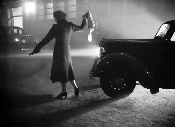 1952. Женщина с фонариком впереди машины во время лондонского тумана