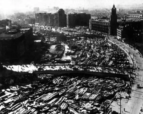 1946. Набережная Шанхая забита лодками для эвакуации после победы коммунистов в Китае